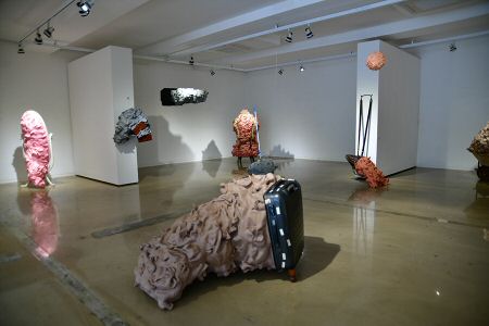(좌) Handbag / 31×54×81cm / 핸드백,PVC인형팔,반려견목줄 / 2017 (우) Shopping bag / 77×102×72cm / 시장바구니, PVC인형다리, 가방손잡이 / 2017
