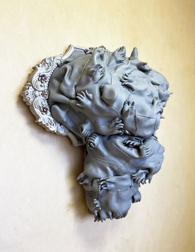 A Lumpy Room-Your and Our Room / 94×96×128cm / 의자, 액자, PVC 인형 팔·다리 / 2019 A Lumpy Room-My Room / 62×56×152cm / 거울프레임, PVC 인형 팔·다리 / 2021